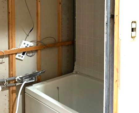国立市にて、浴室入口の折戸を3枚引戸に替えたいというご依頼があり 現状を拝見するためお伺いさせていただきました…