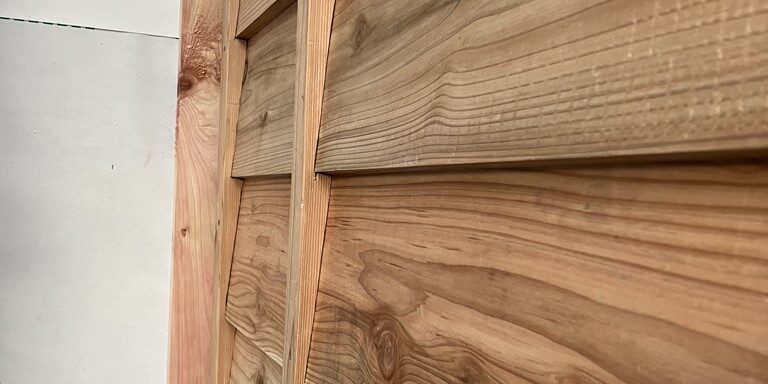 こちらの南京下見板、押縁の加工、取付施工は当社社長が行いました。