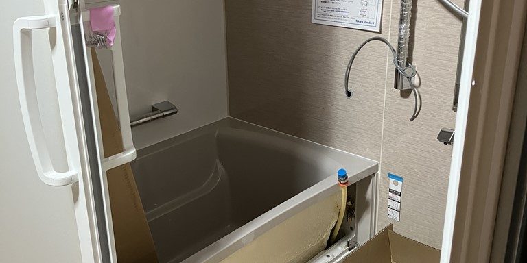 昭島市にてのリノベーション工事はシステムバス組付設置施工に