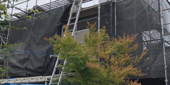 足場を組んだ後、既存の日本瓦を撤去し新規に野地板を張り替えていきます。