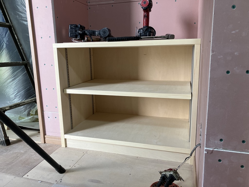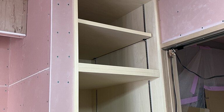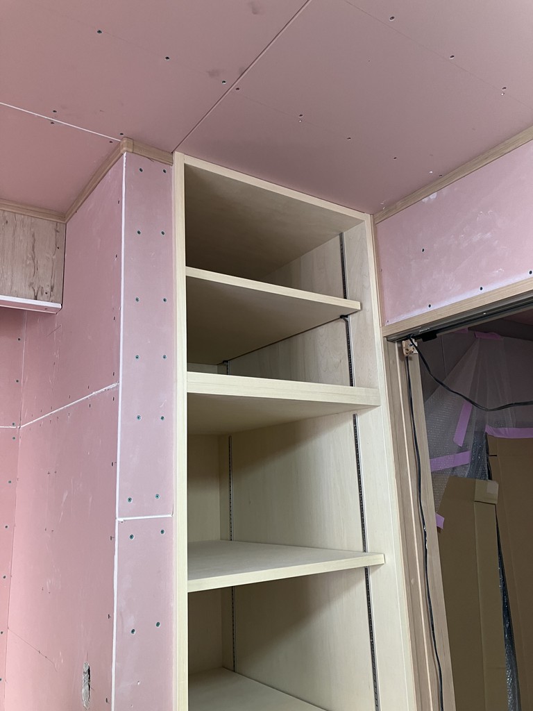 室内は、お施主様のご希望に合わせて造作の可動棚を加工取付設置しております。