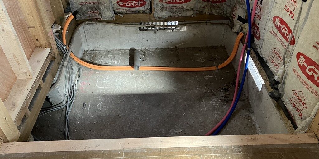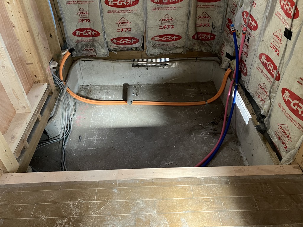 浴室土間コンクリート打設工事とその乾燥が完了し、