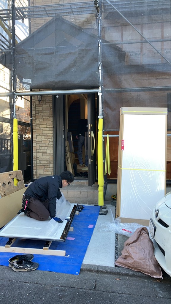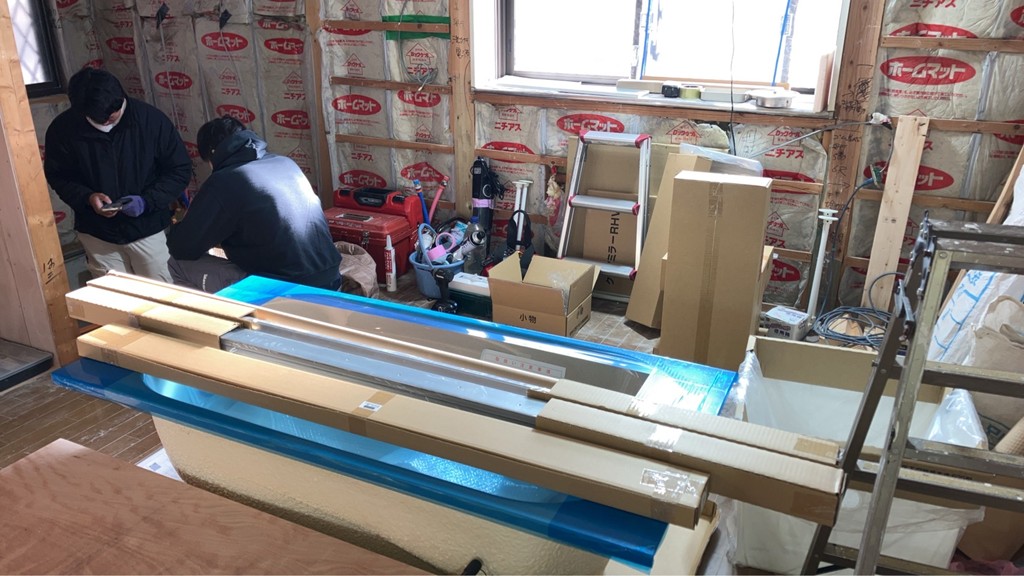 八王子市にてリフォーム工事は、本日システムバス組付設置施工に入っております。