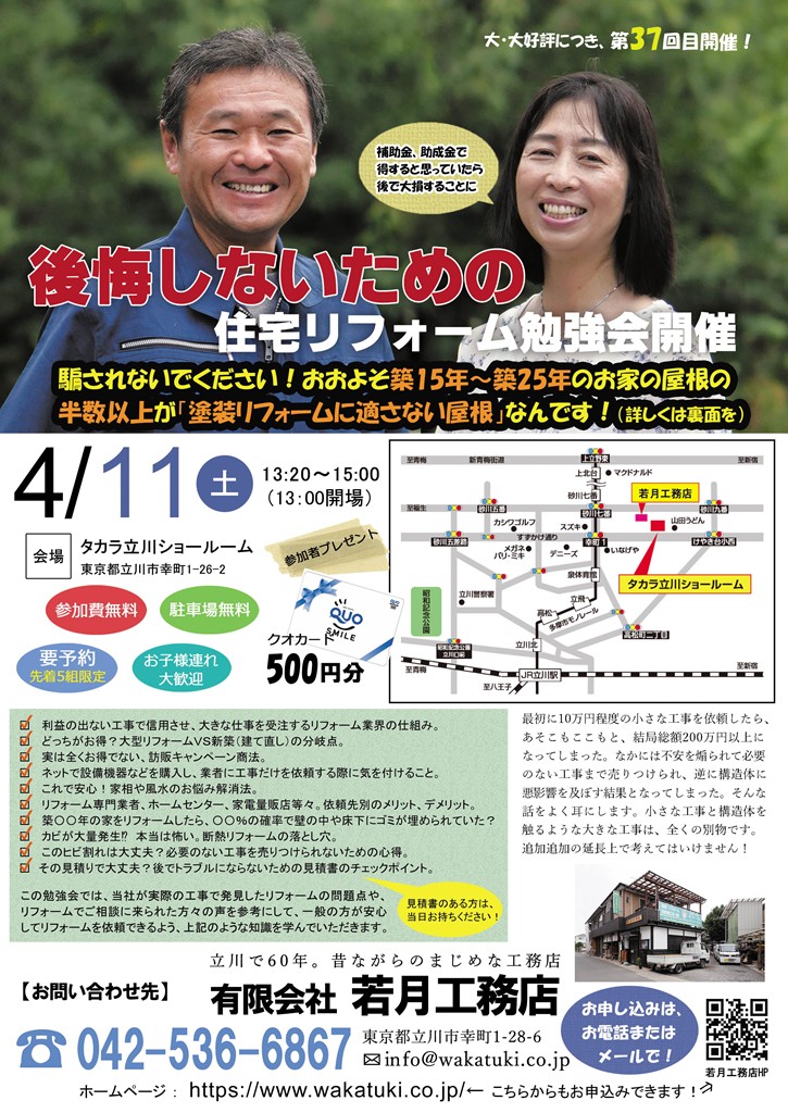 4/11(土)第37回「後悔しないための住宅リフォーム勉強会」開催!