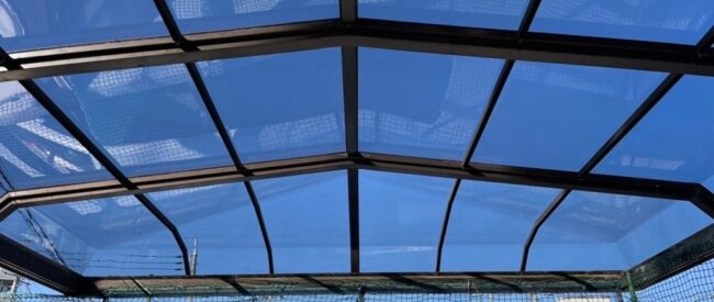 立川市にてマンション集積所屋根修繕工事をさせていただきました。 経年劣化と紫外線による変色のため屋根パネルの強…